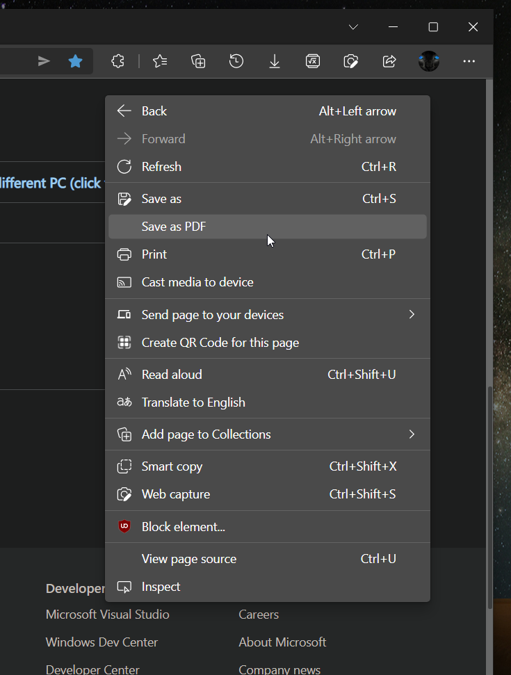 Microsoft has fixed the White flash bug in the Edge browser’s flyout menus. It has also added a “Save as PDF” option to the page context sensitive menus making the saving of a webpage as pdf faster and easier. Both the changes are currently available in Canary channel only