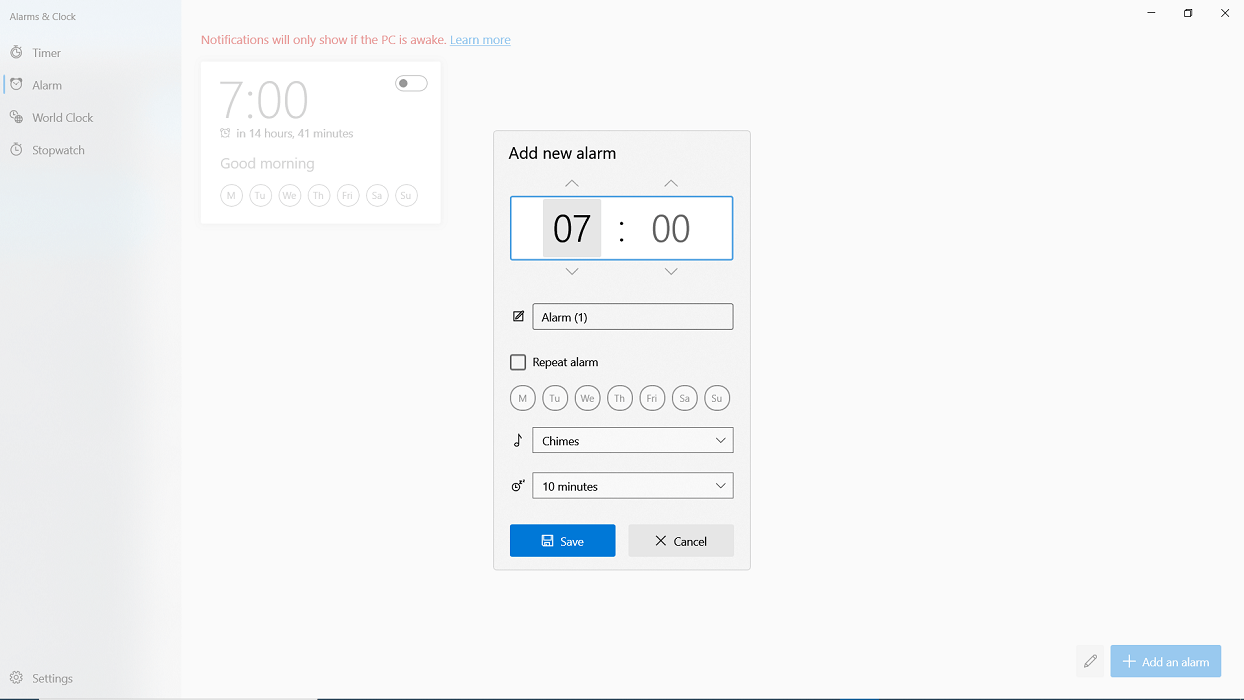 - The Sun Valley version of Alarms & Clocks app seems to pack a much better alarm editing tool.